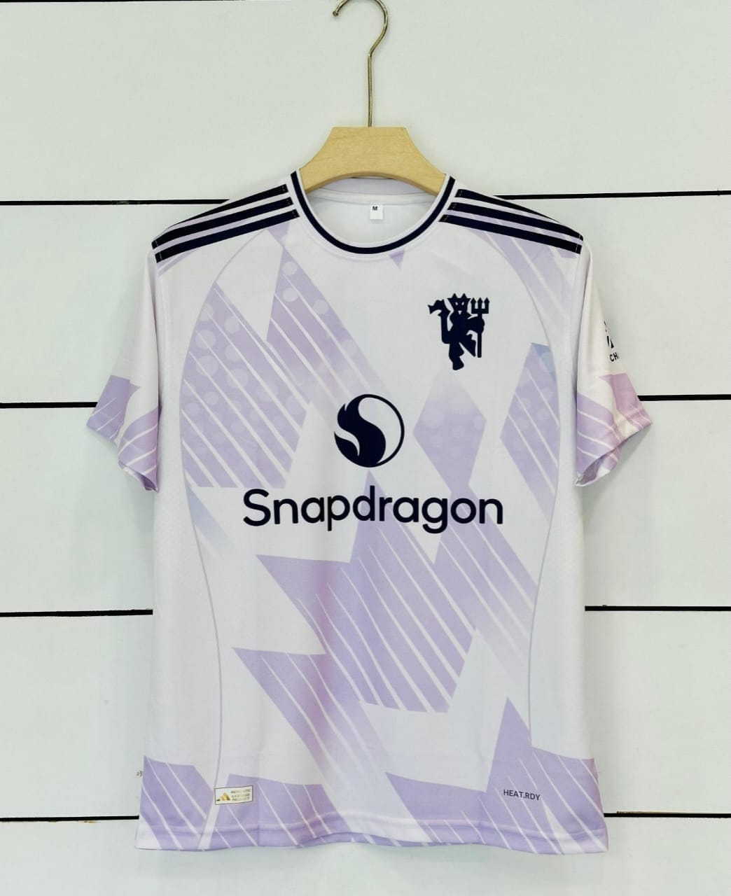 • Emblems: Includes the embroidered Manchester United crest, the Adidas logo, and the “Snapdragon” sponsor.