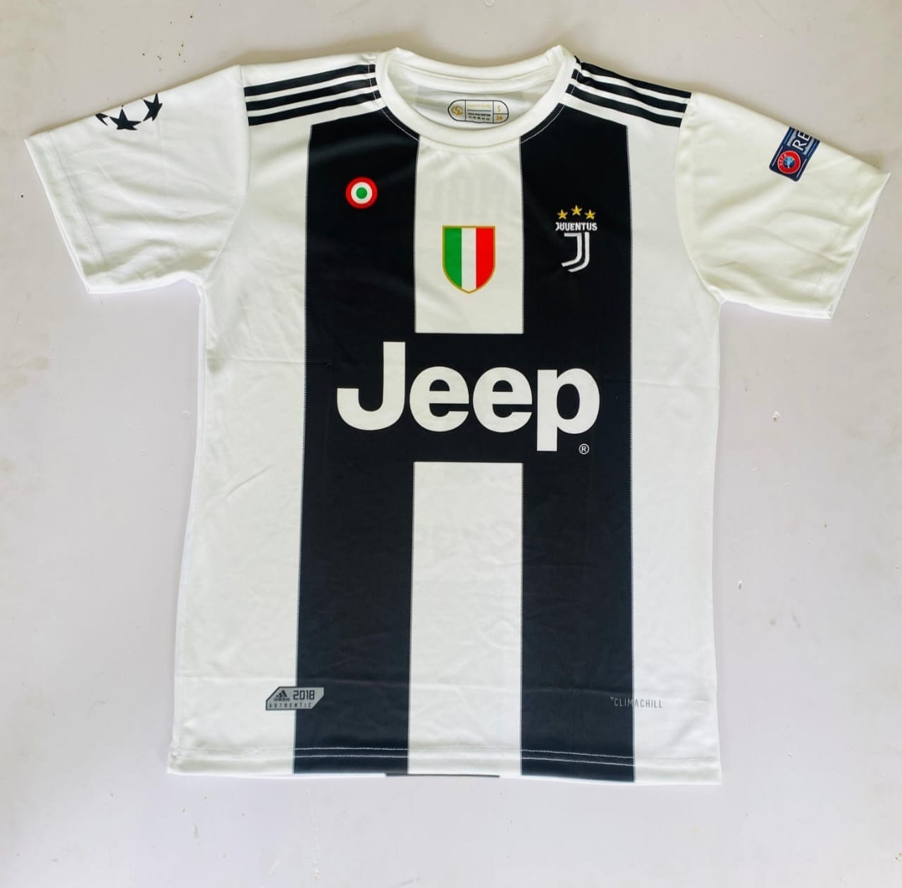 Capture the excitement of a legendary moment in football with this Juventus 2018-19 Home Jersey. This is the iconic Bianconeri kit worn during Cristiano Ronaldo’s sensational first season in Turin, a year that saw him lead the club to their eighth consecutive Serie A title.