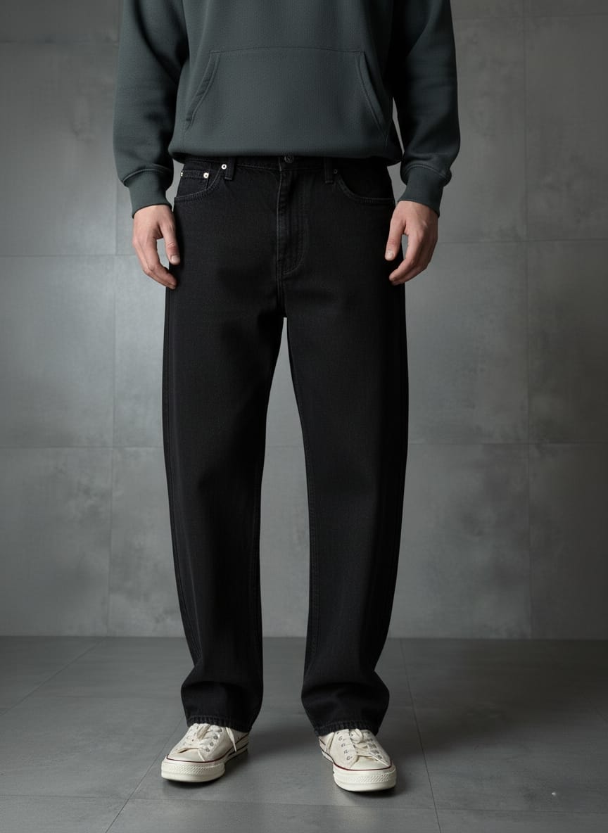 Keep it sleek, simple, and stylish with these black relaxed fit jeans. A timeless essential, this pair is crafted to give you all-day comfort while keeping your look effortlessly sharp. Whether you’re styling it with hoodies, oversized tees, or casual shirts, these jeans will never let you down. A must-have in every modern wardrobe, perfect for both casual outings and streetwear-inspired fits.