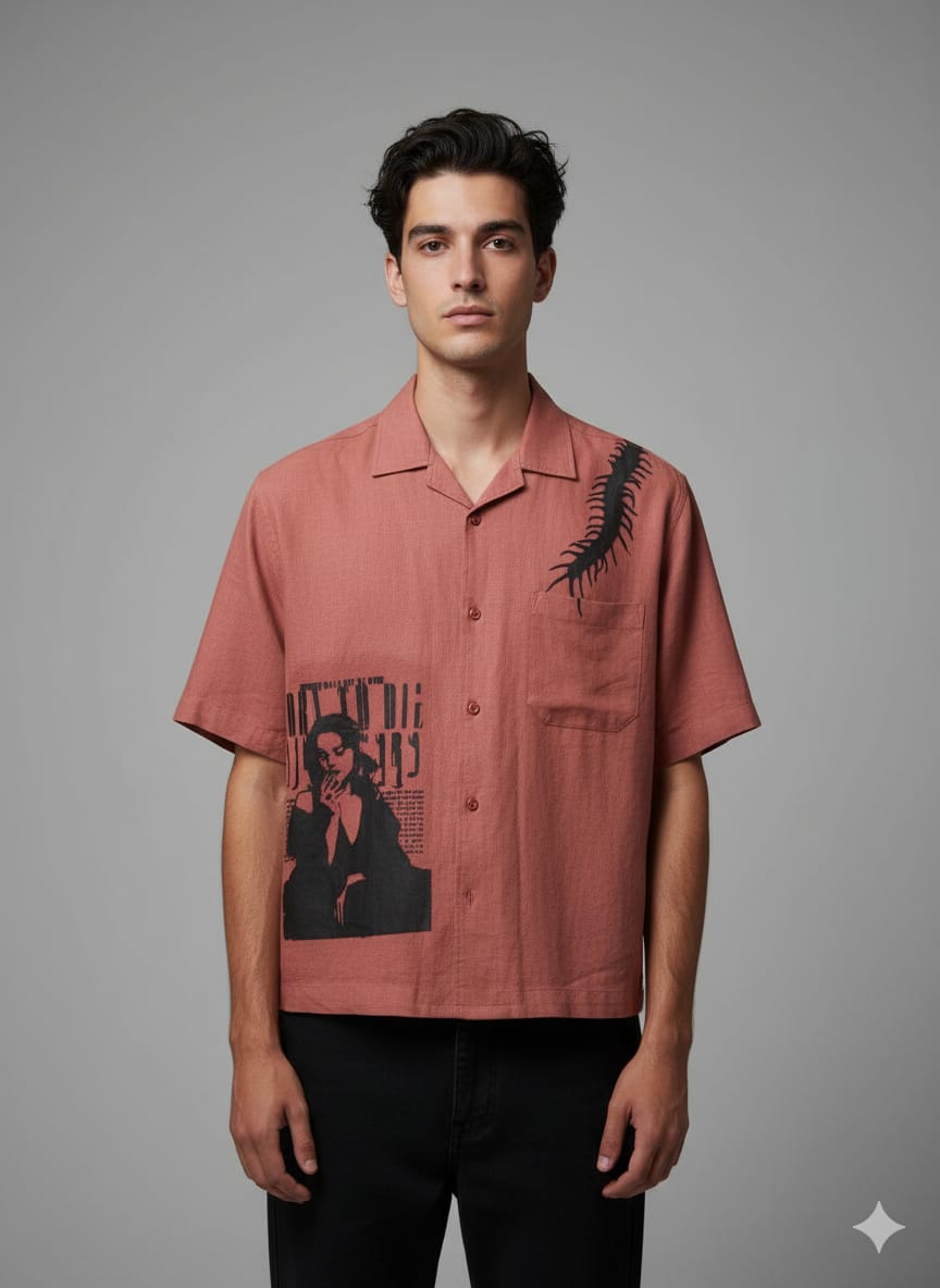 Turn heads with this statement graphic shirt, designed for those who love to stand out. Featuring art-inspired bold prints on the front and back, this shirt blends comfort with edgy street style. The Cuban collar and relaxed fit make it a perfect pick for both casual outings and evening hangouts. Made with lightweight fabric, it ensures breathability and ease of movement.