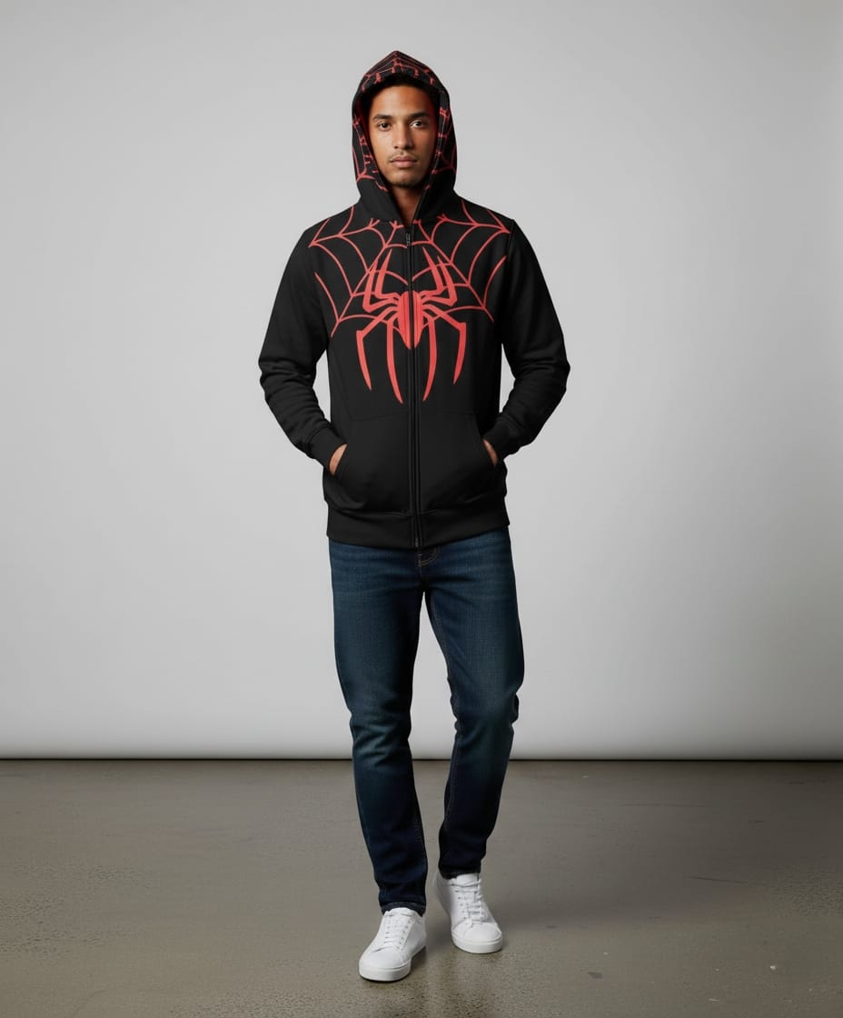Men’s Spider-Man Inspired Black & Red Hoodie (Full Zip-Up)Men’s Spider-Man Inspired Black & Red Hoodie (Full Zip-Up)