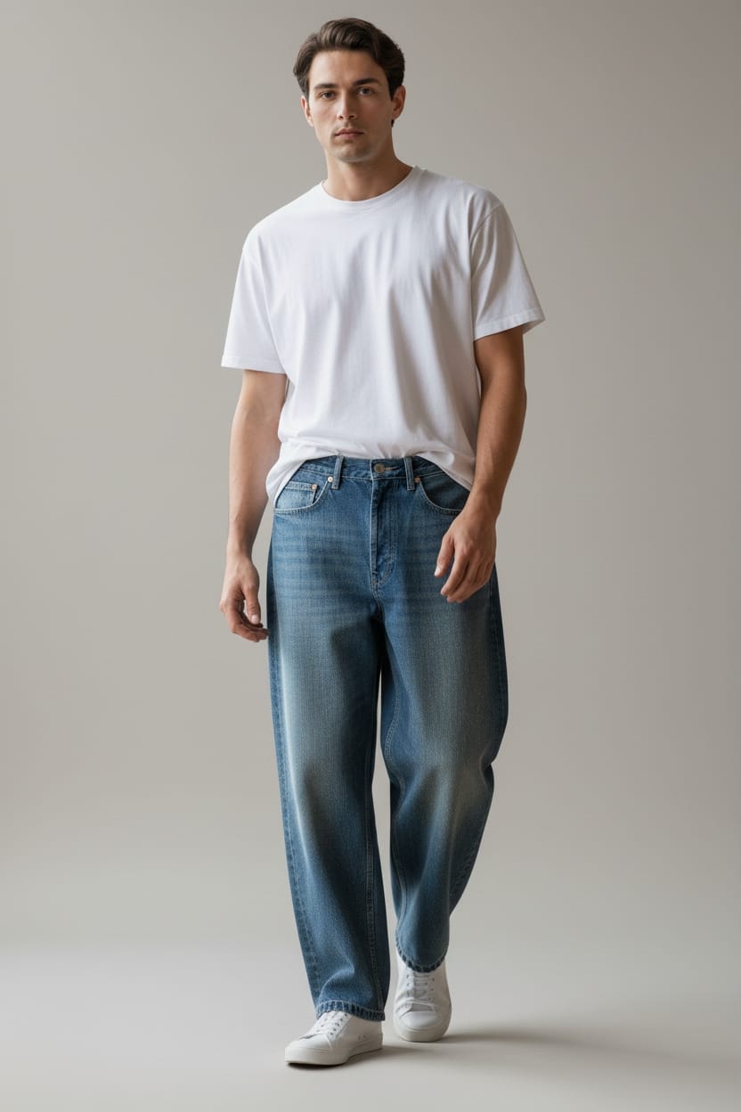 Upgrade your casual style with these men’s wide leg baggy jeans. Designed in durable cotton denim, featuring a trendy faded wash, 5-pocket styling, and a relaxed mid-rise fit. Perfect for streetwear looks when paired with sneakers and tees.
